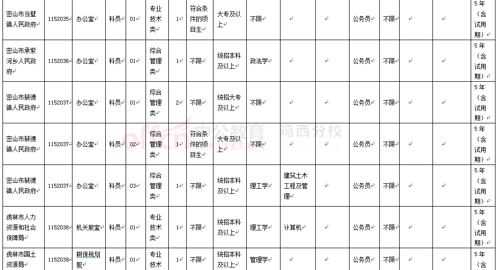 2015年黑龍江省艱苦邊遠(yuǎn)地區(qū)公務(wù)員考試招錄雞西地區(qū)職位表