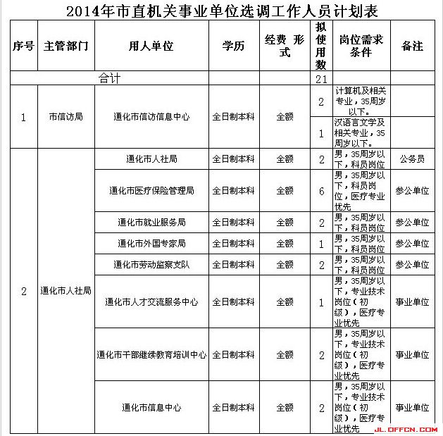 2014年吉林通化市直機(jī)關(guān)事業(yè)單位選調(diào)工作人員計(jì)劃