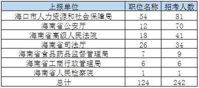 2018海南公務員考試??谑杏媱澱袖?42人,124個職位,較去年有所減少!