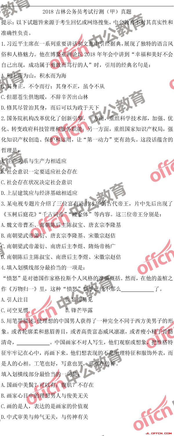 2018吉林省公務(wù)員考試行測(cè)歷年(甲)