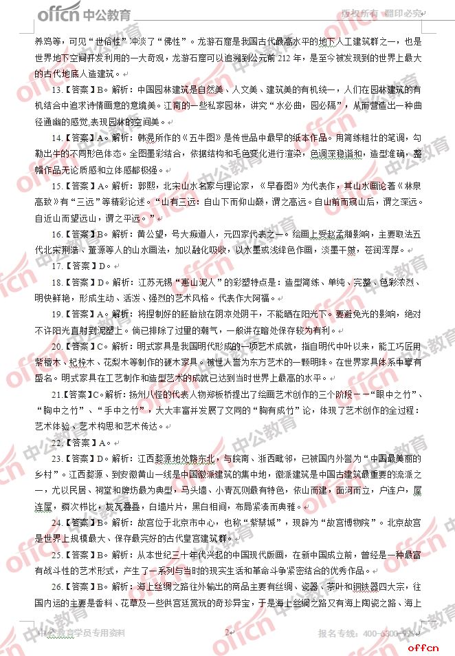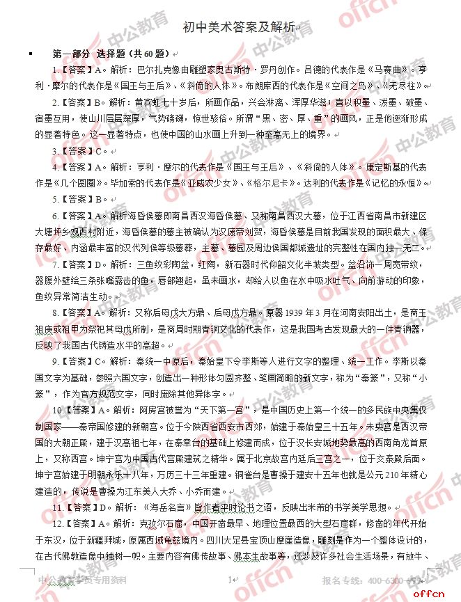 2017年江西教師招聘《初中美術》試題答案及解析
